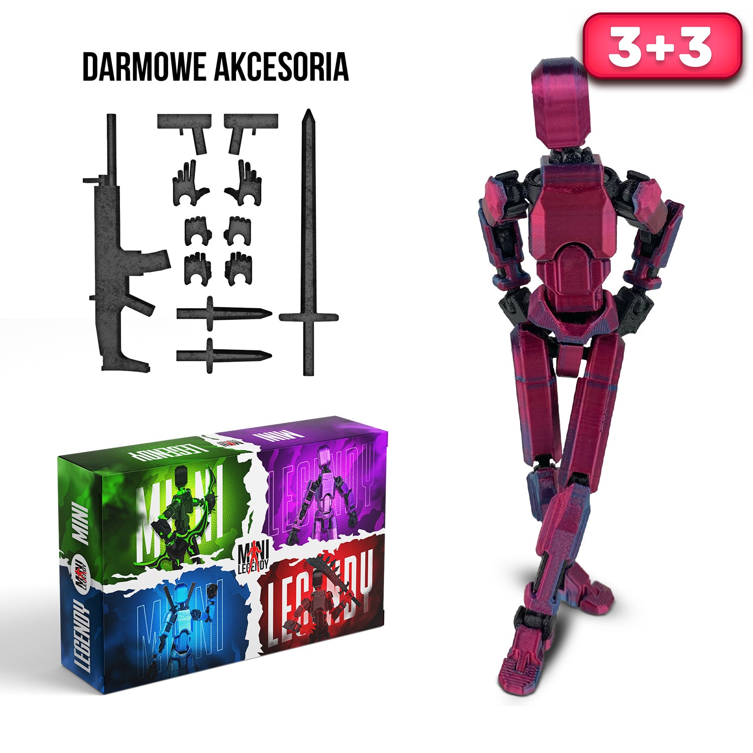Výška figúrok Mini Legendy je 14 cm. Figúrky sú vyrobené z vysoko kvalitných materiálov PLA a PETG. Figúrky sú originálnym produktom vyrábaným našou spoločnosťou so sídlom v Dolnom Sliezsku, konkrétne vo Vroclave.